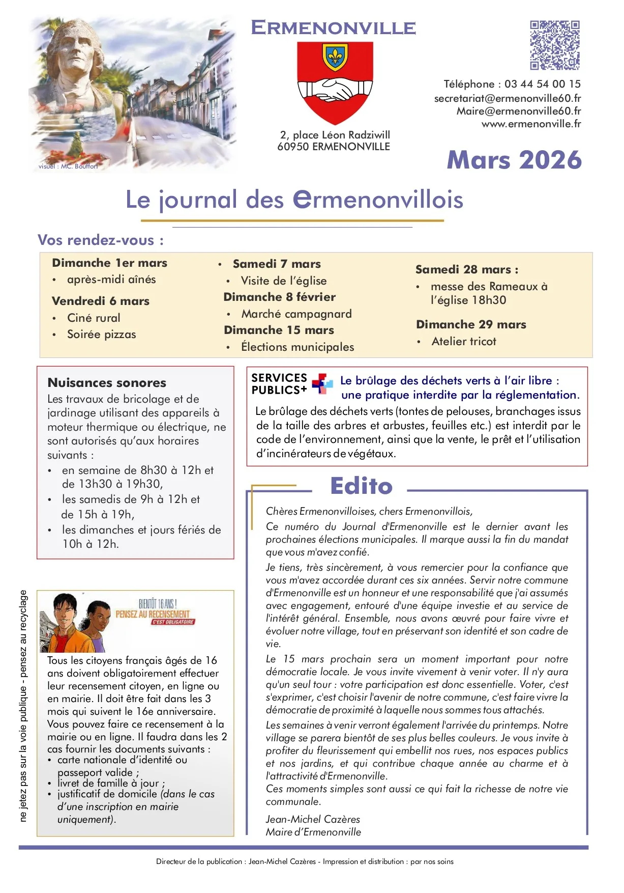 RÉUNION DU CONSEIL MUNICIPAL LIEU : Salle du Conseil, Mairie d’Ermenonville DATE : Samedi 21 mars 2026...